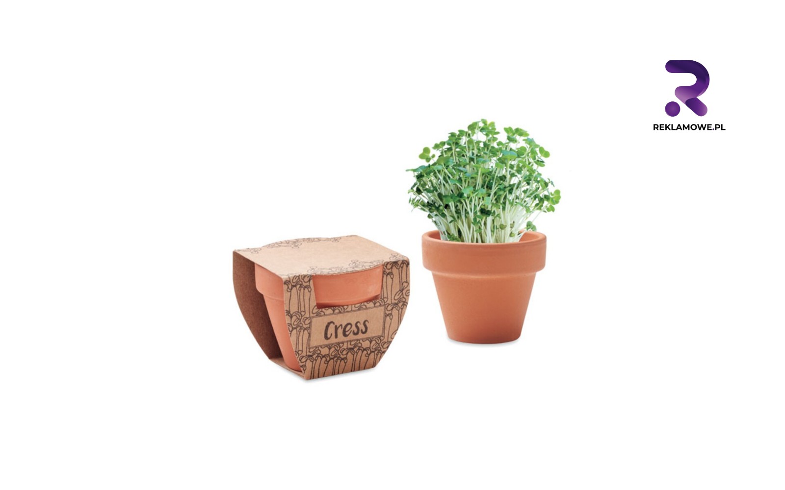- Doniczki z nasionami – zestaw zawiera nasiona aromatycznych ziół lub kolorowych kwiatów. Użytkownik śledzi każdy etap wzrostu rośliny, a nadruk z logo towarzyszy mu dzień po dniu, dosłownie „zakorzeniając” pozytywne skojarzenia z firmą.